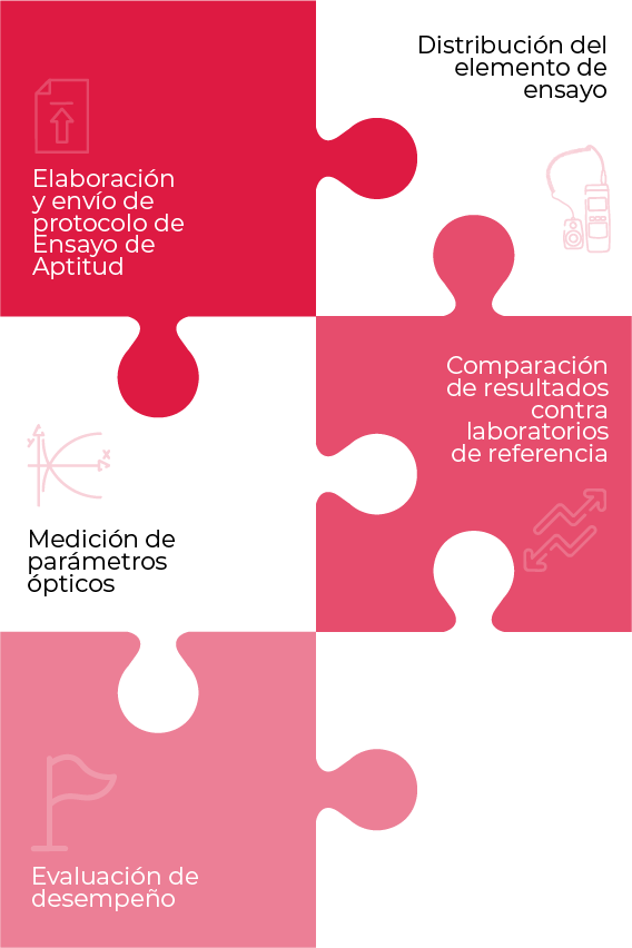 Los ensayos de aptitud en óptica (calibración de espectrofotómetros UV-Vis, medición de filtros ópticos como óxido de holmio, óxido de didimio, filtros de densidad neutra, dicromato de potasio, pasabanda, entre otros) son ampliamente reconocidos como una herramienta esencial para demostrar la competencia de los laboratorios de calibración.